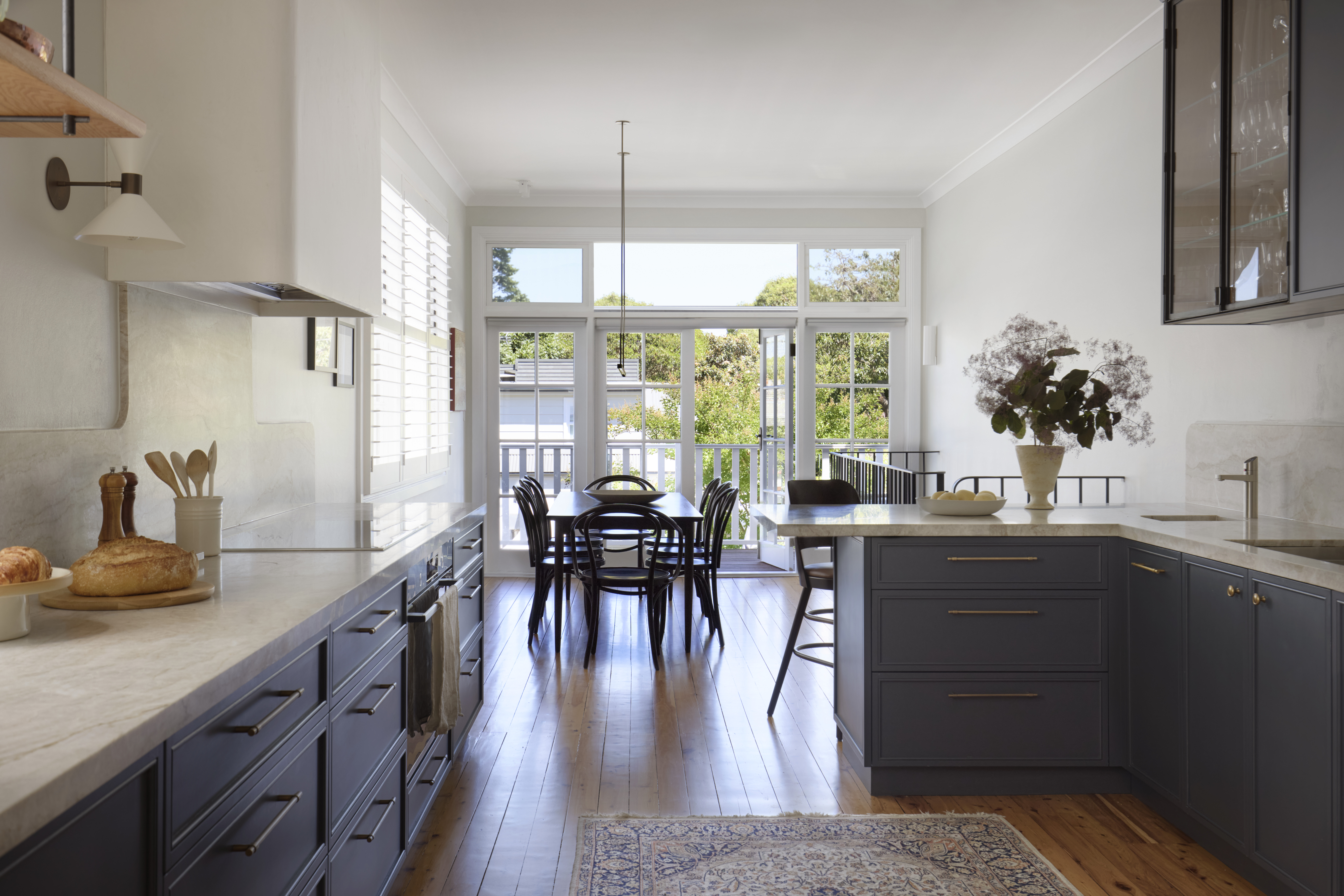 • The project featured custom, hand-painted joinery throughout, new stair installation, sanded and polished timber floors, microcement finishes, and bespoke metal detailing integrated into the joinery package.